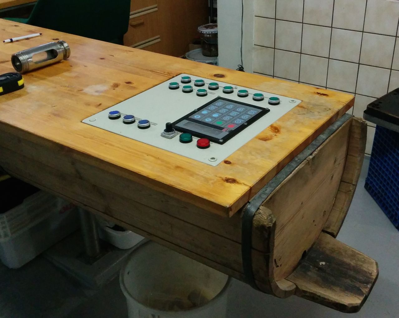 Panimon ohjauspaneeli on pultattu kuurnaan, jolla Matti aikoinaan aloitti sahdinpanon