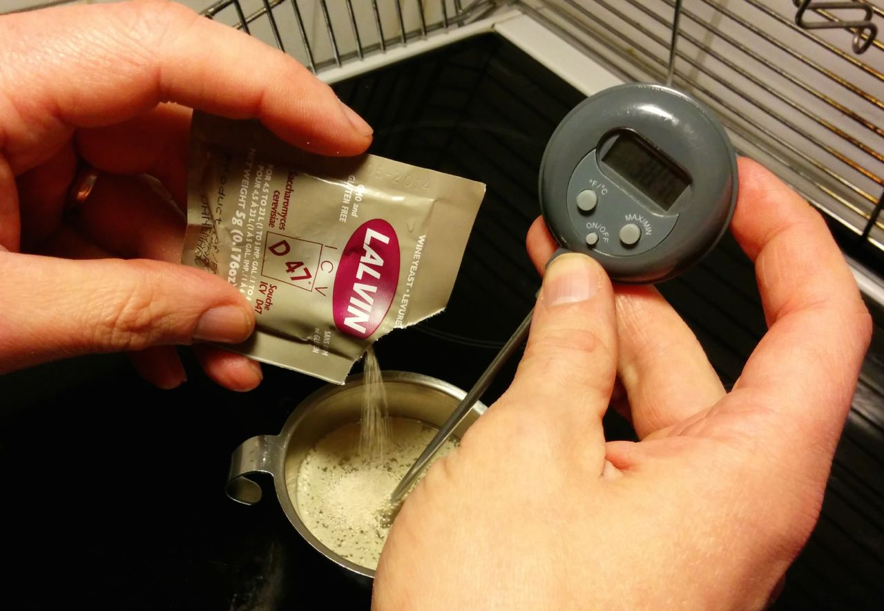 Monet kuivahiivan valmistajat ohjeistavat ripottelemaan hiivan suoraan mehun pinnalle, vain koska hiivauksen halutaan näyttävän helpolta. Suosittelen kuitenkin käyttämään parikymmentä minuuttia hiivan nesteyttämiseen. Hiiva kiittää ja palkitsee puhtaamman makuisella siiderillä.