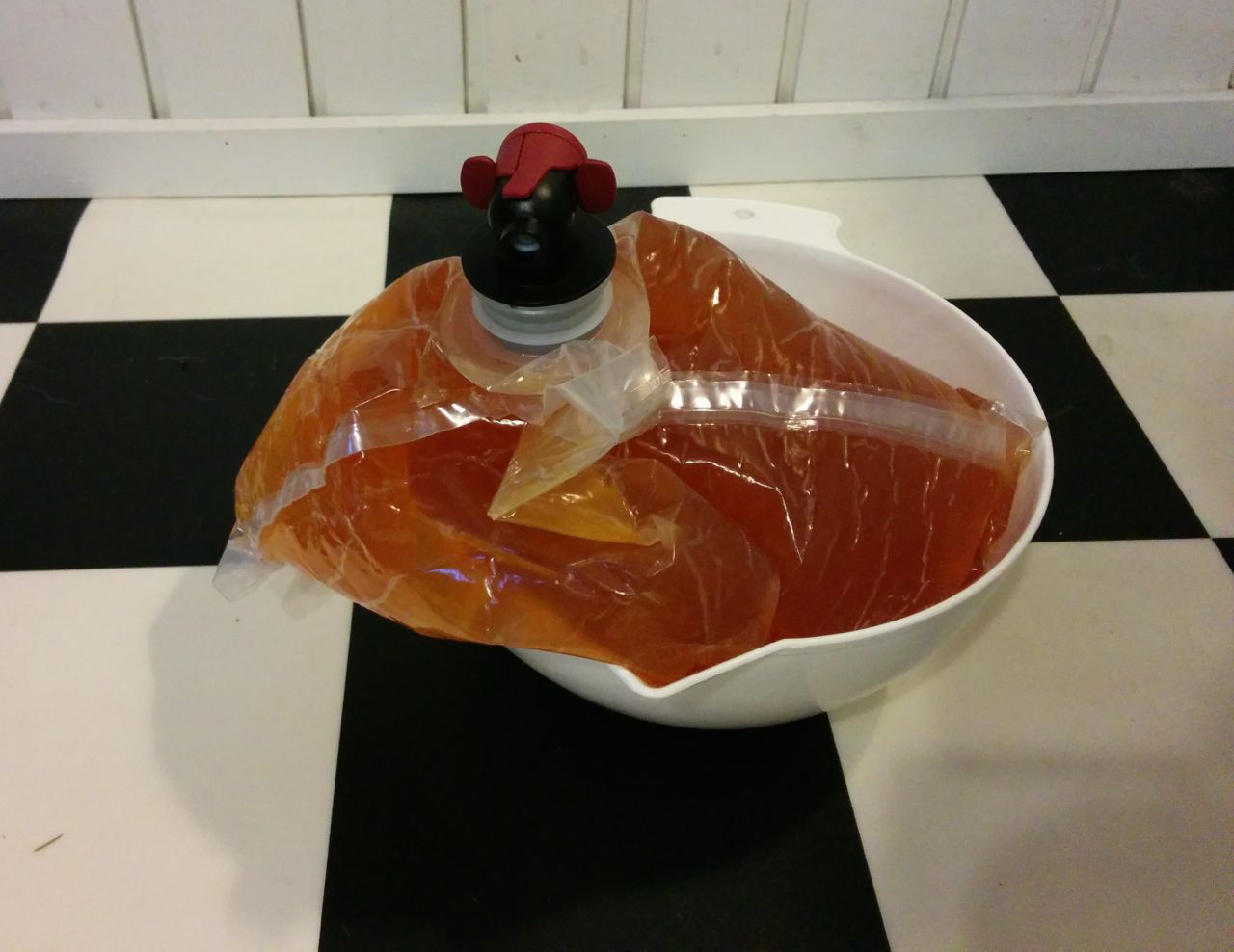 • Hei Jenny! Hyvin vajaakin käymisastia toimii, jos se on suhteellisen tiivis ja siiderin pullottaa tai tynnyröi melko pian käymisen loputtua, alle kuukauden sisään käymään laittamisesta. Usein siideri kirkastuu melko hyvin itsestään käymisen jälkeen. Erillisiä kirkastusaineita ei tarvita. Vaikka neuvoin juuri pullottamaan melko pian käymisen päättymisen jälkeen, kannattaa silti antaa siiderin seisoa muutaman päivän sen jälkeen kun käyminen näyttää pysähtyneen. Jotkut omenamehut eivät kirkastu kovin hyvin, mutta samea siideri on mielestäni ok kunhan sameus ei tule hiivasakasta. Hiivasakka tippuu itsestään pohjalle ajan kanssa käymisen jälkeen.