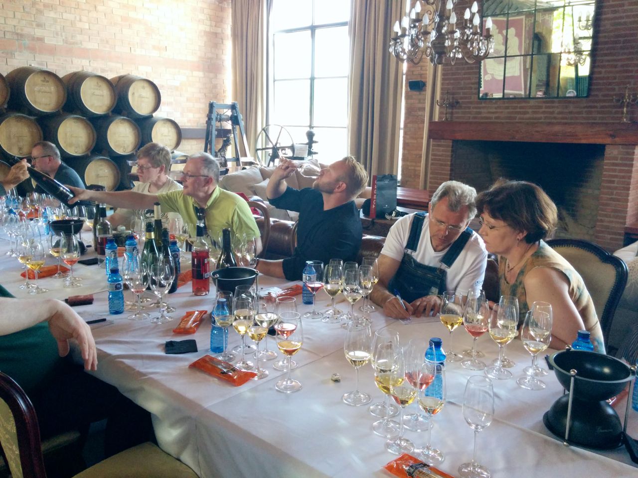Vaihtelimme laseja ristiin ja jokainen pääsi maistamaan molempia vuosikertoja. Vuosikerta 1999 maistui tietenkin taivaalliselta, mutta en pitäisi sitä valtavan paljon hienompana juomana kuin tavallisten kuolevaistenkin ulottuvissa olevaa Gramona Ill Lustrosta. Maku oli tyylikkäästi kehittynyt ja ikääntynyt ja ero vuosikertojen 1999 ja 2004 välillä oli selvä. Tämän kuohunnan jälkeen maistoimme Gramonan valikoimasta neljä kuohumatonta viiniä, kaikki keskenään hyvin erilaisia ja omassa sarjassaan korkealaatuisia: valkoviinit Xarel-lo ja Gessami, roseeviini Primeur Rosado ja jälkiruokaviini Vi de Glas Gewürztraminer. Tällä reissulla minusta tuli paikallisen sitruksisen xarel-lo rypälelajikkeen fani ja yli puolet mukaan ostamistani viineistä on tehty tästä rypäleestä. Gramonan Xarel-lo on hyvä esimerkki tästä lajikkeesta tehtyjen viinien monikäyttöisyydestä ruokapöydässä. Gessami oli veikeän kukkea ja Primeur Rosado taas pirteän mansikkainen, molemmat kepeämpiä hymyn suupieliin tuovia, positiivisessa mielessä hassuja viinejä. Vi de Glass on loistava kukkea ja trooppisen hedelmäinen jälkiruokaviini, joskaan maussa ei ole niin voimakasta paikallista talon leimaa.